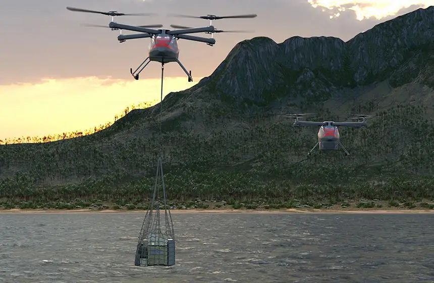 2021年8月,美國Volansi公司完成首次海軍和海岸警衛(wèi)隊艦艇間無人機(jī)自主貨物投送試驗,驗證了美軍新型海上后勤運輸補(bǔ)給方式。Volansi公司新任首席執(zhí)行官是美空軍前任采購、技術(shù)和后勤助理部長威爾·羅珀,該公司此前曾獲美空軍小型企業(yè)創(chuàng)新研究合同。演示活動共展示VOLY C10和VOLY M20兩型垂直起降無人機(jī),其中C10無人機(jī)機(jī)長2.1 m,翼展2.93 m,航程約80 km,可攜帶4.5 kg載荷。M20無人機(jī)航程約560 km,續(xù)航時間8 h,可攜帶9 kg貨物和4.5 kg傳感器載荷。