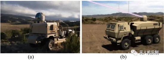 美國陸軍針對HELW開展了一系列研究計劃,如TEL、JHPSSL、RELI、ELTD、HELMD、亞當(dāng)和阿拉丁。在他們的推動下,美國陸軍成為第一個將HELW投入戰(zhàn)爭的國家。例如,ZEUS 早在2003年就開始了在阿富汗的第一次任務(wù),隨后LADS、LCD、Laser Avenger也相繼登場。美國目前用于反無人機任務(wù)的HELW主要有ATHENA、HEL-MD、亞當(dāng)、CLaWS、MEHEL和蝗蟲。雷神公司于2019年向空軍交付的HELWS專為反無人機任務(wù)而設(shè)計。圖 4(a)顯示了它與MRZR全地形車的集成。HELWS是目前最先進(jìn)的車載HEL反無人機武器之一,已經(jīng)在實戰(zhàn)中進(jìn)行了多次測試。例如,它在2018年3月的MFIX實驗中摧毀了12架飛行的I級和II級無人機,甚至與一架阿帕奇AH-64直升機作戰(zhàn)。隨后于2019年12月在俄克拉荷馬州進(jìn)行了實驗和2020年1月的白沙導(dǎo)彈靶場(WSMR)。近期最有前途的車載HELW是一種100kW級的新型武器系統(tǒng),名為HEL TVD,如圖4(b)所示。HEL TVD目前處于“預(yù)原型”階段,計劃在2022年完成100千瓦版本的測試。最終目標(biāo)是在2024年將其功率提高到300千瓦,并實現(xiàn)四個系統(tǒng)的間接防火能力。