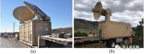 HPMWs是高效定向能反無人機武器,可以在一定范圍內(nèi)準(zhǔn)確地禁用目標(biāo)無人機,而不會產(chǎn)生大量能源浪費和損壞其他系統(tǒng)。HPM本質(zhì)上是在單一頻率上具有數(shù)千伏特的高功率窄帶電磁波。因此,在損壞程度方面,既可以實現(xiàn)系統(tǒng)功能的暫時中斷,也可以實現(xiàn)電子元件的物理破壞。微波的定向能力遠(yuǎn)不如激光,但這也是HPMW比HELW更能應(yīng)對無人機群攻擊的原因。例如,美國空軍和雷神公司在2020年1月14日在WSMR的演示中擊落了由數(shù)十架帶有HPM的無人機組成的無人機群。目前只有美國擁有成熟的HPMW,命名為“Phaser” 、“Tactical High Power Combat Responder (THOR)”、“Counter-Electronic High Power Microwave Extended-Range Air Base”防空(嵌合體)”。Phaser 是雷神公司在2013年研發(fā)的實用型水面殺傷武器,如圖8(a)所示。它利用聚集在非常窄的光束中的微波能量以極高的強度攔截目標(biāo)。其強大的戰(zhàn)斗力已在各種測試和演習(xí)中得到證明。例如,它在2018年的陸軍MFIX演習(xí)中擊落了33架無人機。THOR也是AFRL于2019年10月斥資1500萬美元專門開發(fā)的HPMW。THOR在外觀上與Phaser相似,具有360°覆蓋并存儲在容器中,如圖8(b)所示。THOR比Phaser更強大,一次可以擊落50多架無人機。然而,由于微波的特性和電源的限制,Phaser和THOR的有效范圍通常不超過幾百米。因此,AFRL近年來推出了CHIMERA,旨在開發(fā)遠(yuǎn)程HPM防御系統(tǒng),以在更大范圍內(nèi)打擊多個目標(biāo),但尚未進(jìn)行實際測試。