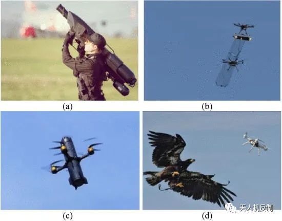 圖:(a) SkyWall 100 網(wǎng)槍(b) DroneCatcher (c) 加拿大“DroneBullet” (d) 老鷹隊