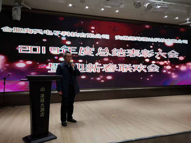 參加本次年會的為合肥海天電子科技有限公司全體員工及子公司安徽耀峰雷達科技有限公司的全體員工。年會上,兩個公司的分管總經(jīng)理分別發(fā)表了2019年度總結報告暨2020年度工作規(guī)劃的重要講話,并向一年來不辭辛苦、努力工作的全體員工致以衷心的問候。領導講話飽含深情,催人奮進,相信2020年公司必將邁向新的輝煌。最后公司總經(jīng)理江洪先生上臺致辭。