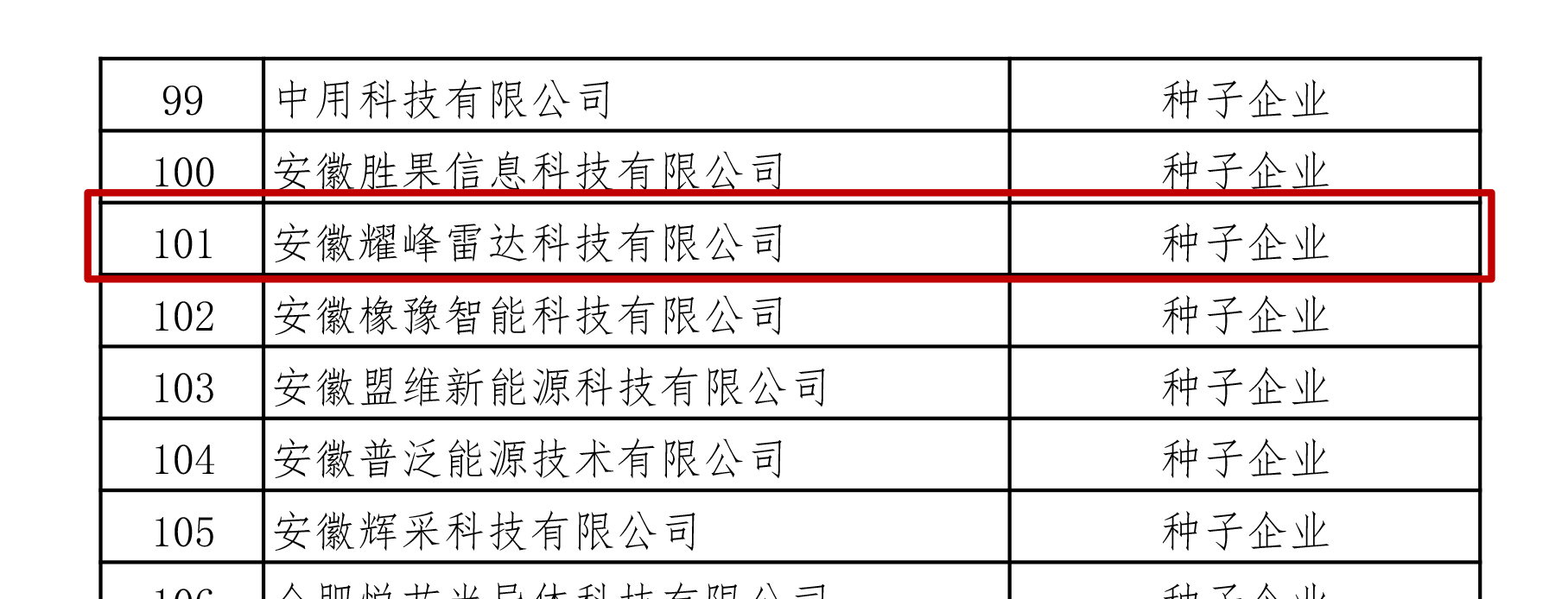 耀峰雷達(dá)入選合肥市2021年度高成長(zhǎng)企業(yè)榜單